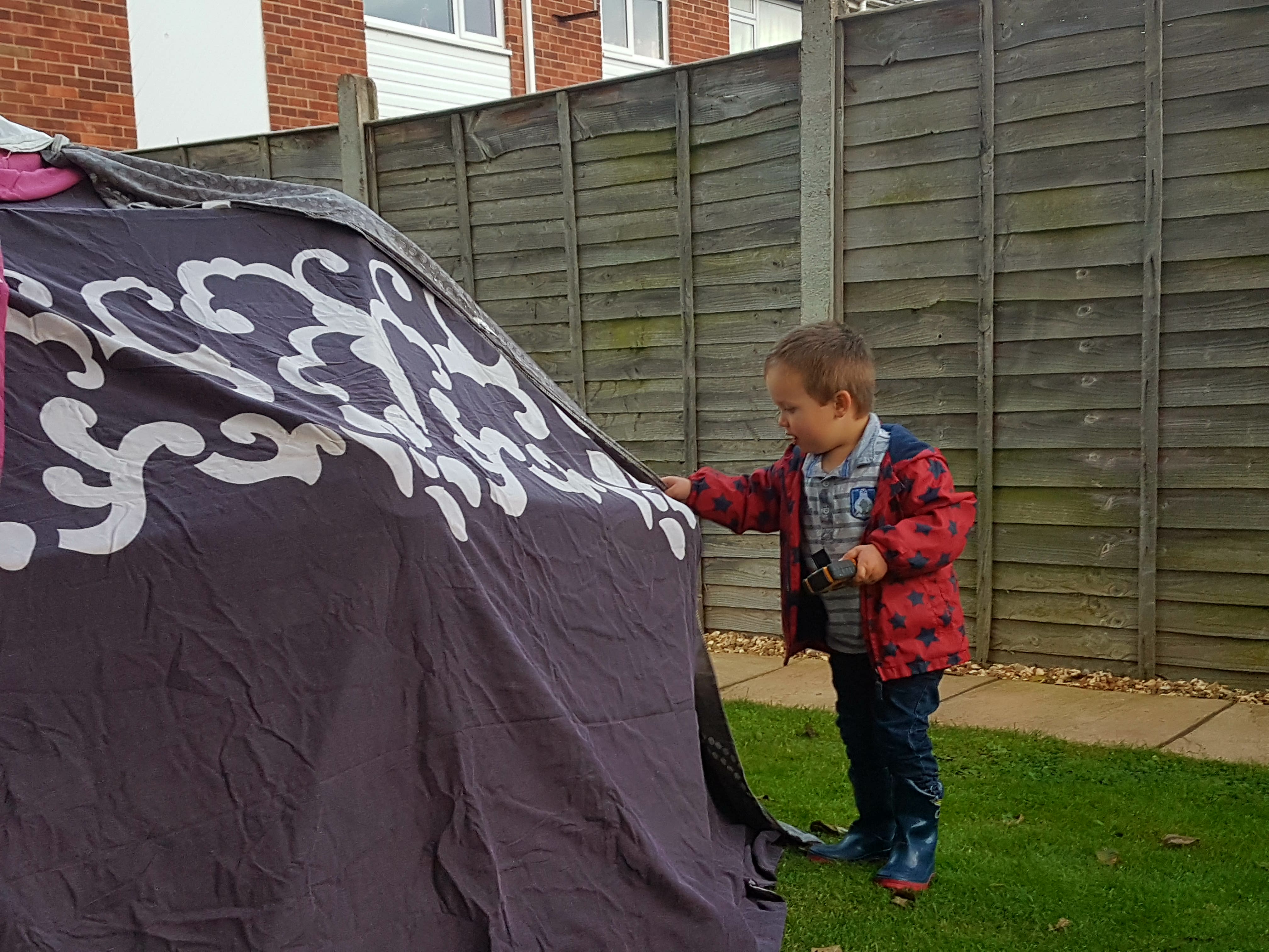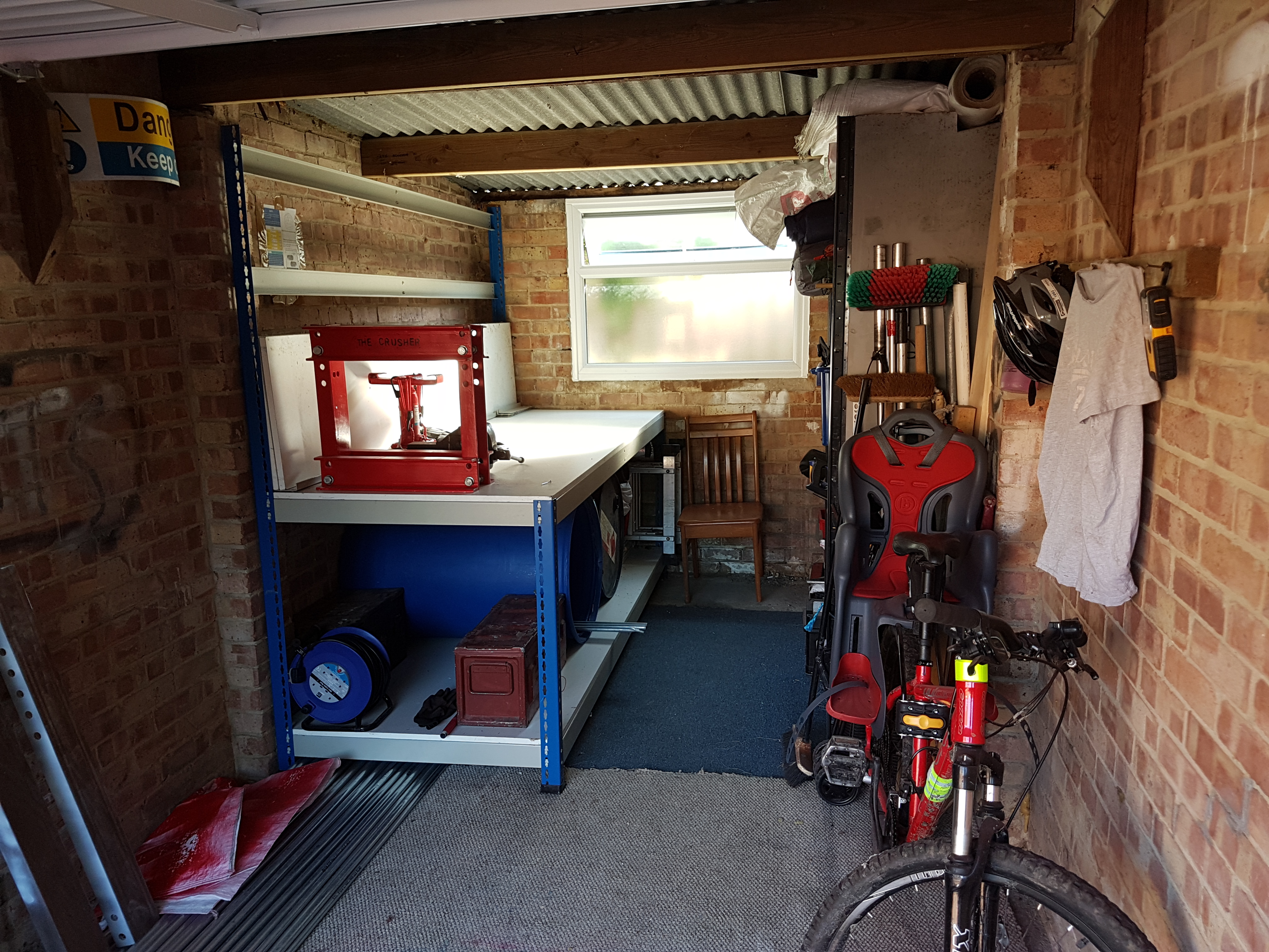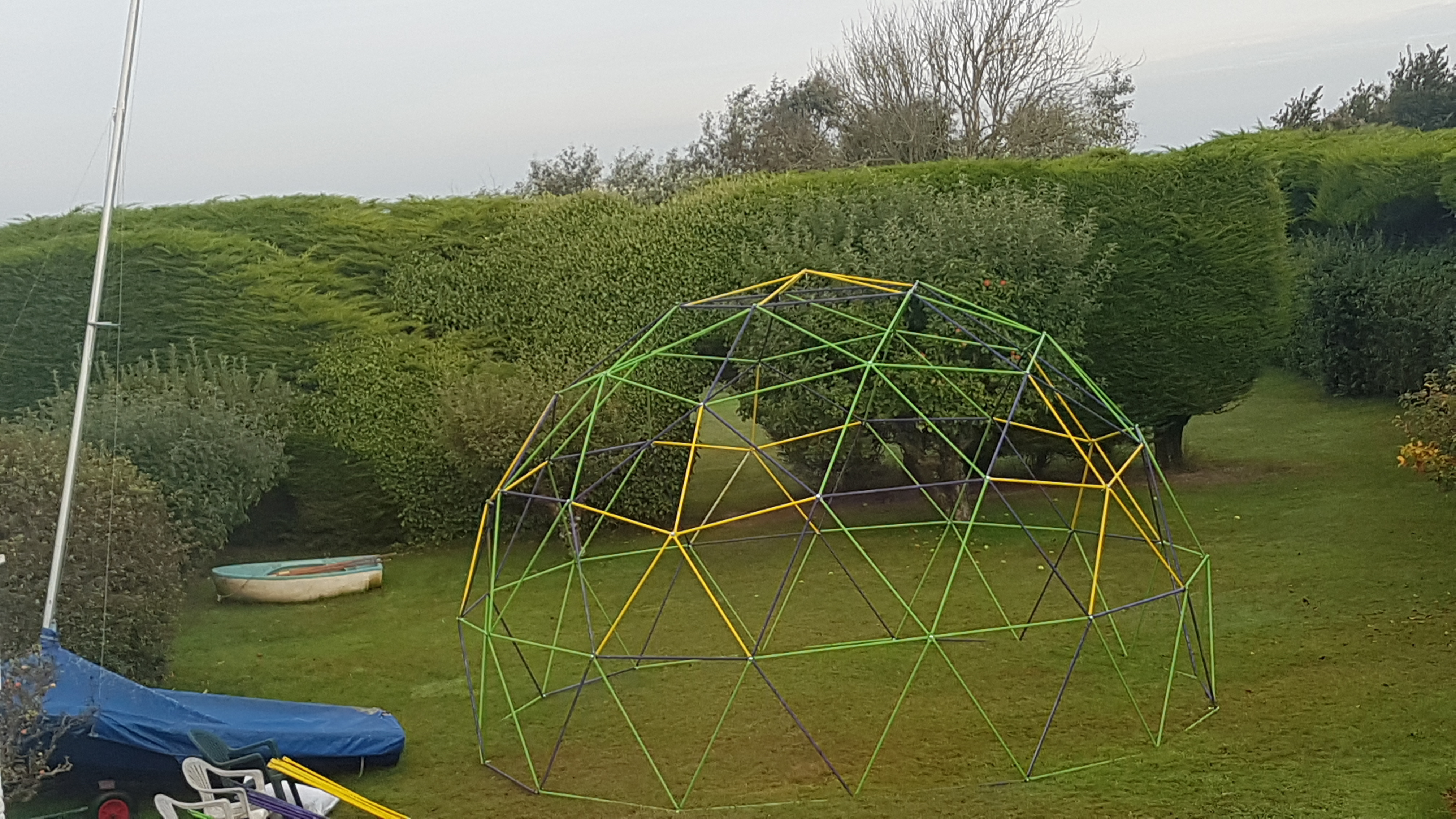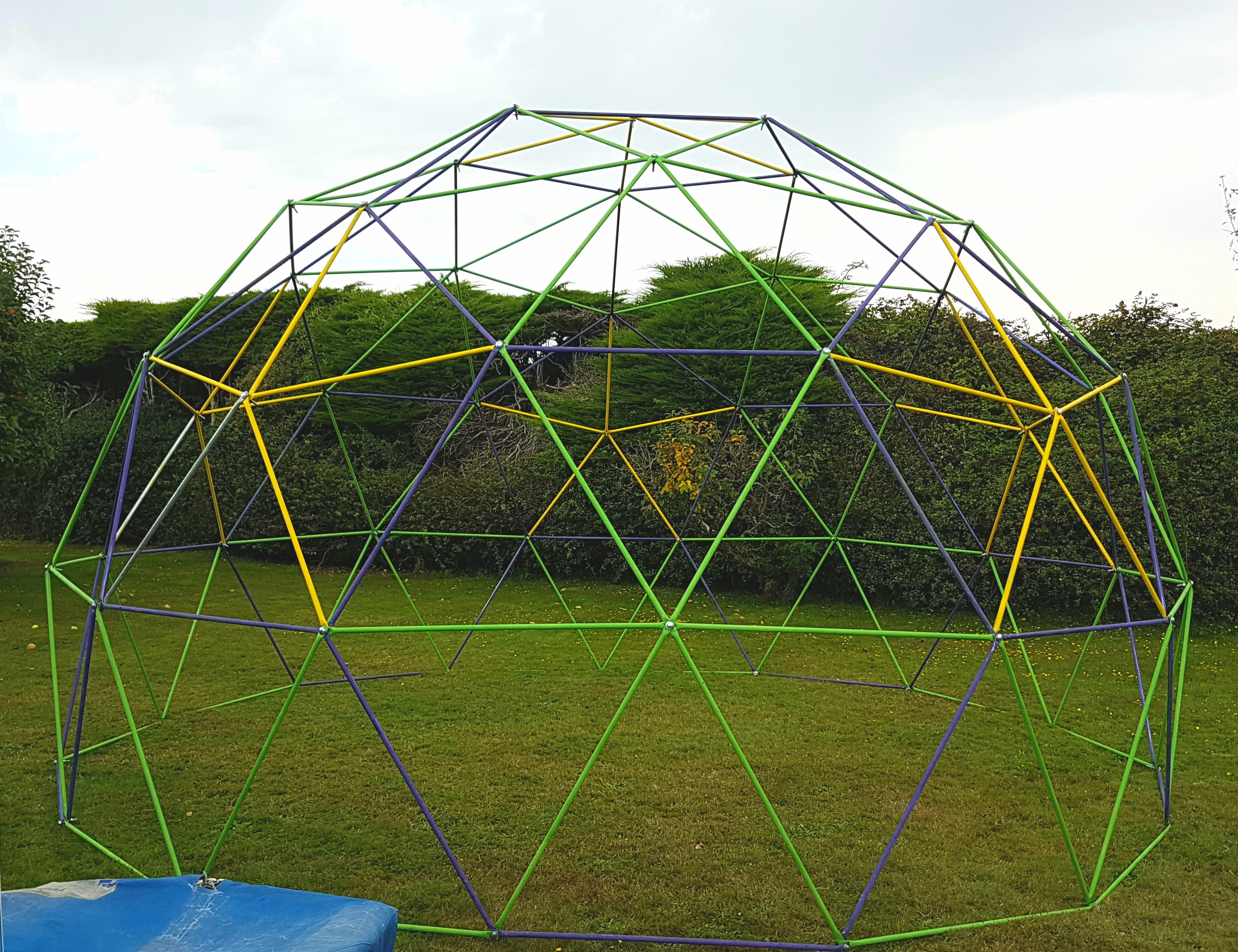 Finally I bit the built and bought some steel conduit, was really wanting to re use something and give something a new funky life but this way it would a smooth build. I made my own hydraulic press to crimp both ends and a pillar drill for fixings.. I had my own workshop going now and hibernated away over winter making it. when summer came me and Bubble Boy went an put it up.