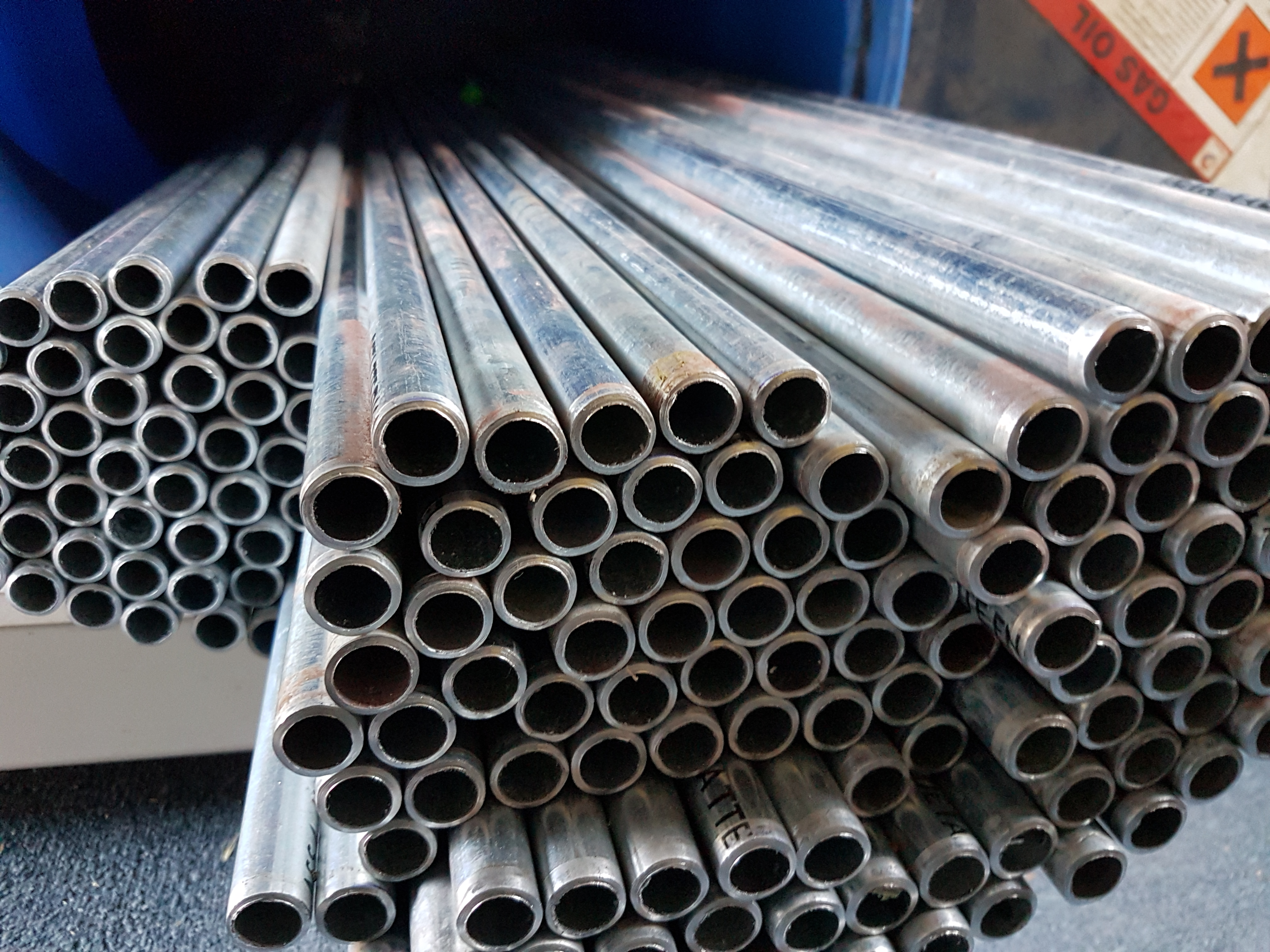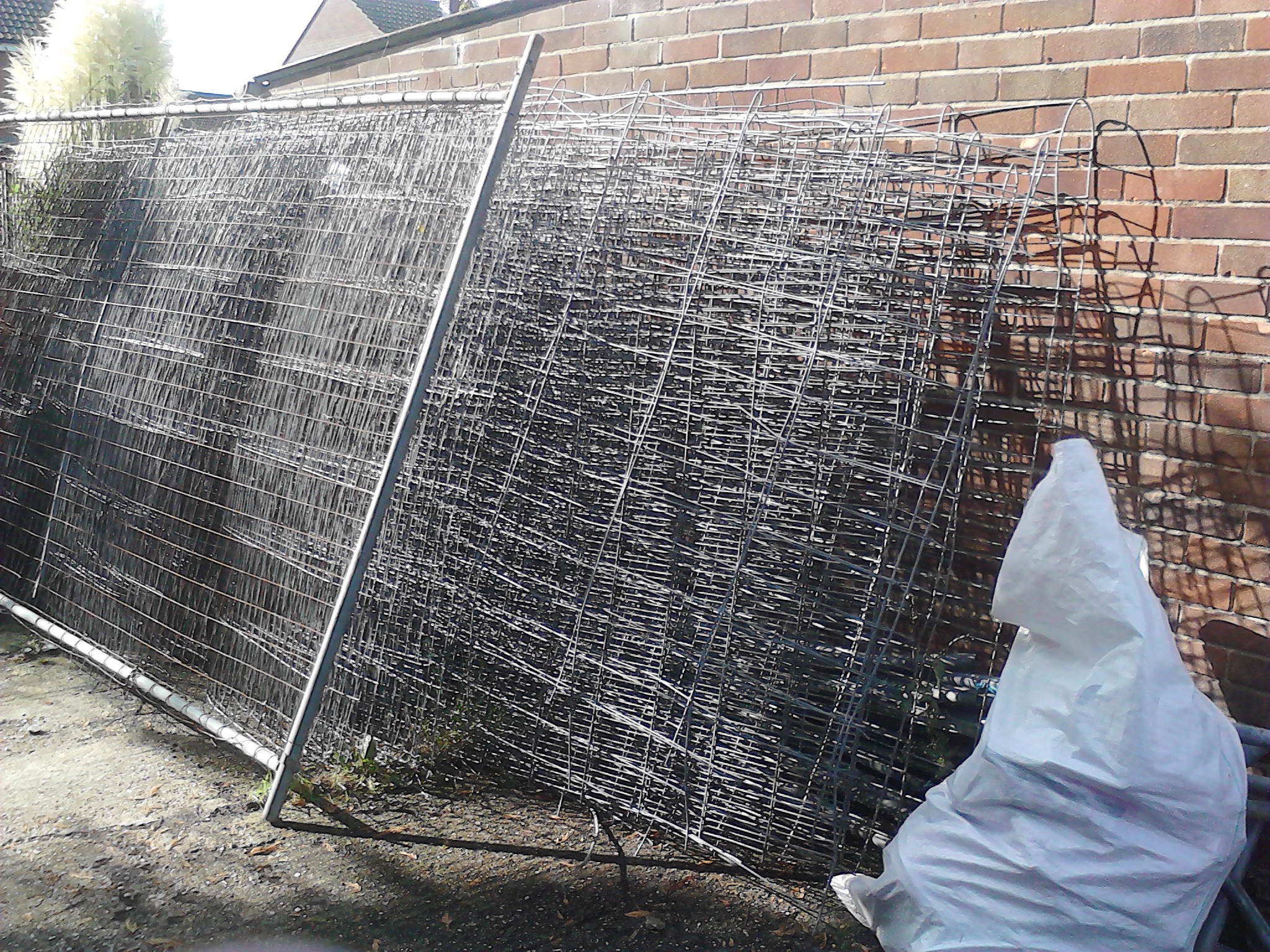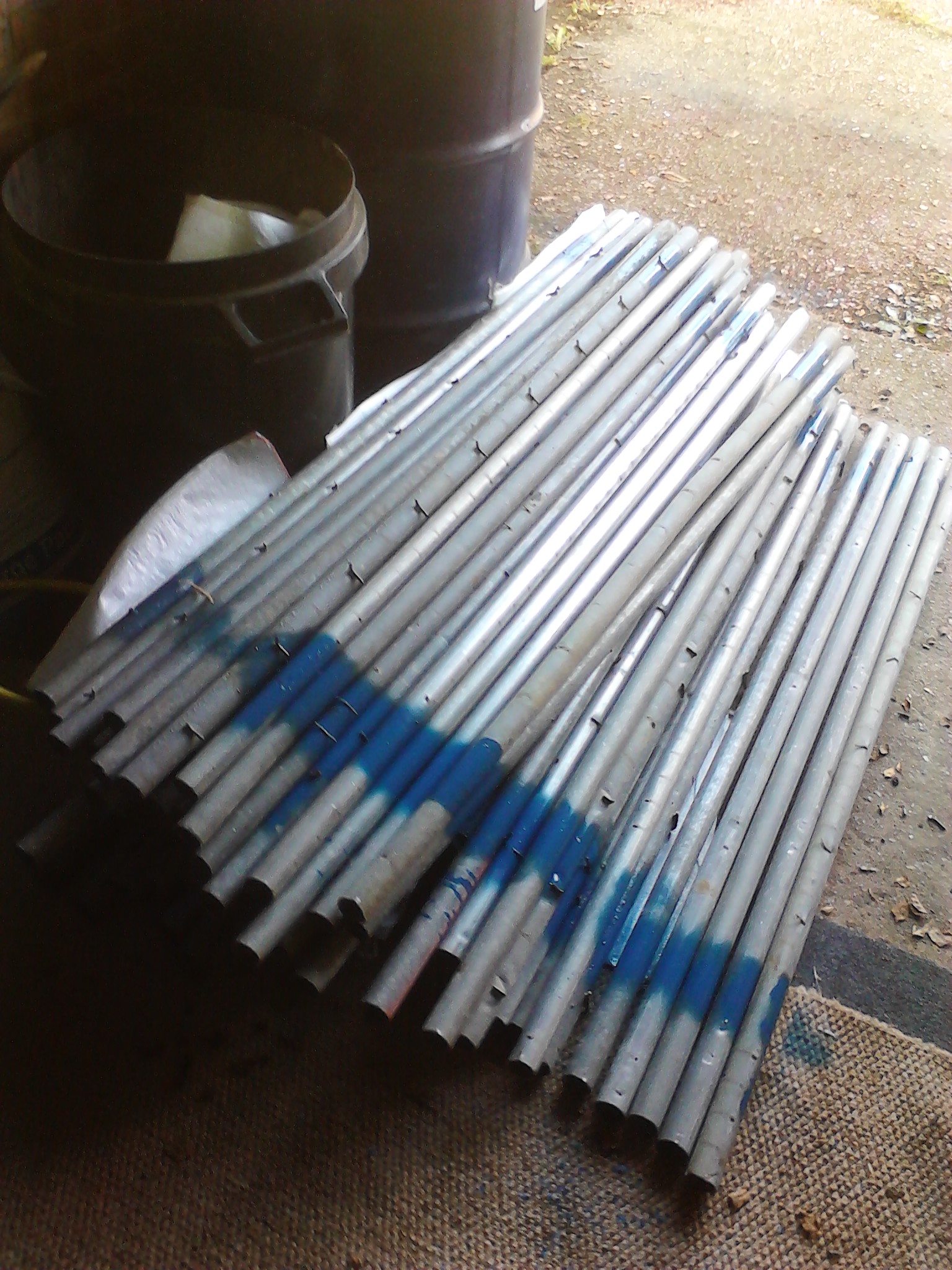 I managed to reclaim some old and damaged Harris site fencing, bought some cutters and a grinder and set to work making lots of straight smooth poles. the realization of how undersized, over worked and at the end of it would not be strong enough. so i went back to the drawing board, looked at the different types of connector designs and other peoples creations.