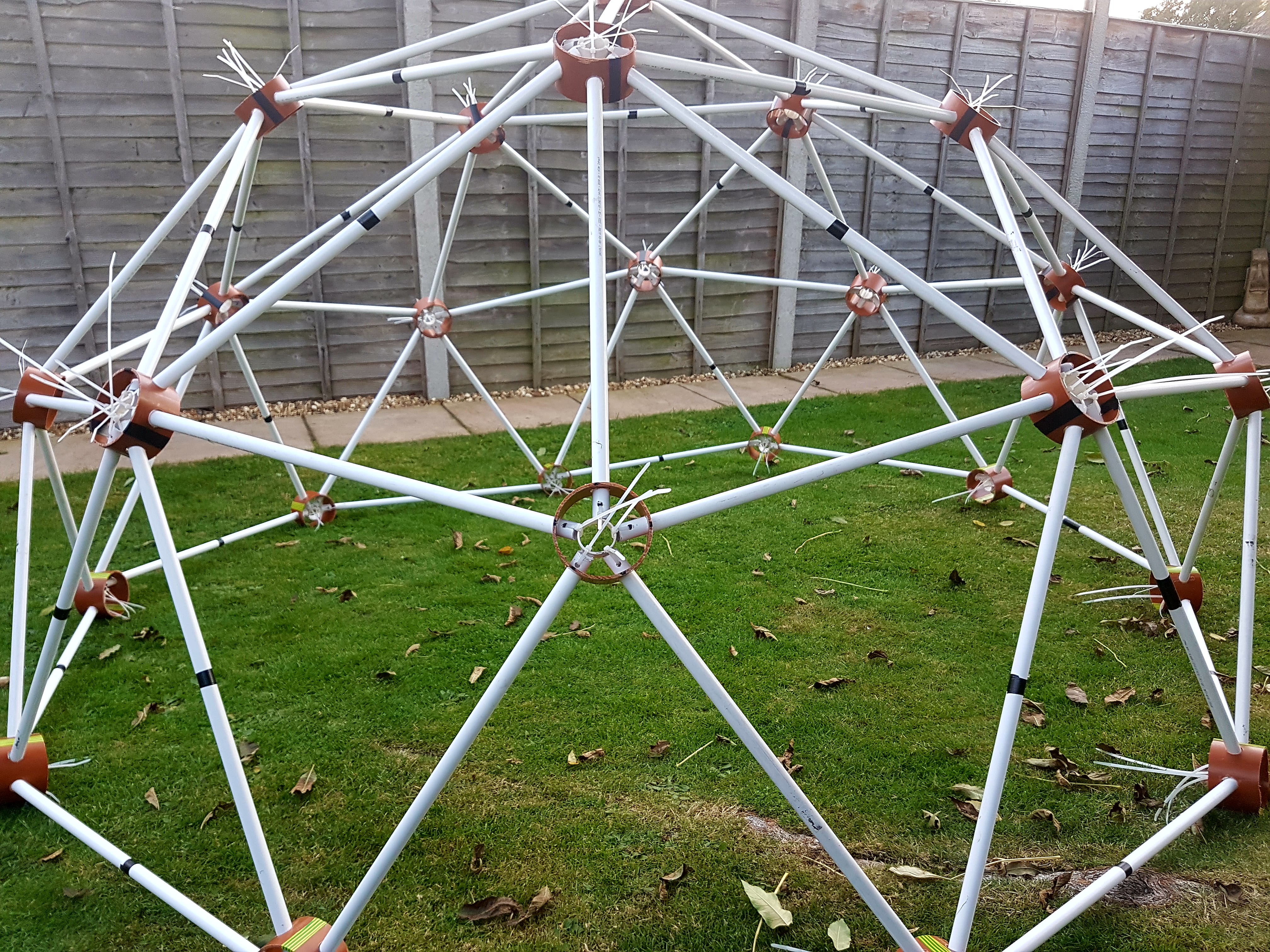 Design No.3 consisted of PVC wastepipe and cable ties. This worked very well for a quick easy build. I managed to use my plumbing experience and discount at supplier. i had this model up in the back garden for a several months in winter.