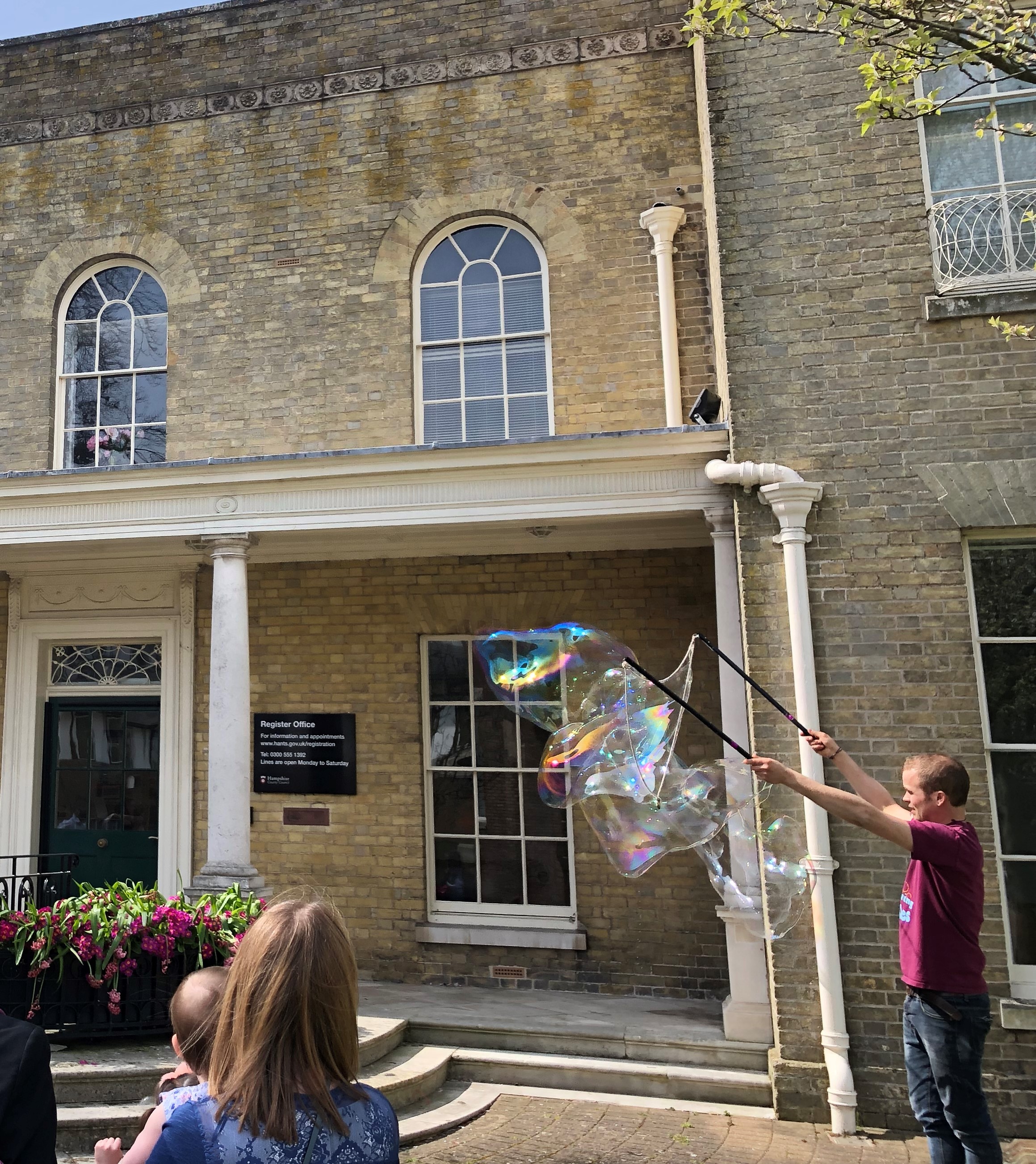I was invited by an old work colleague to surprise a wedding party! it made quite an impact and was nicer for the environment than shop bought confetti or release balloons. Unfortunately I didn’t get any of the professional photographer’s photos, but this was only my 1st wedding and I learnt a lot from it.