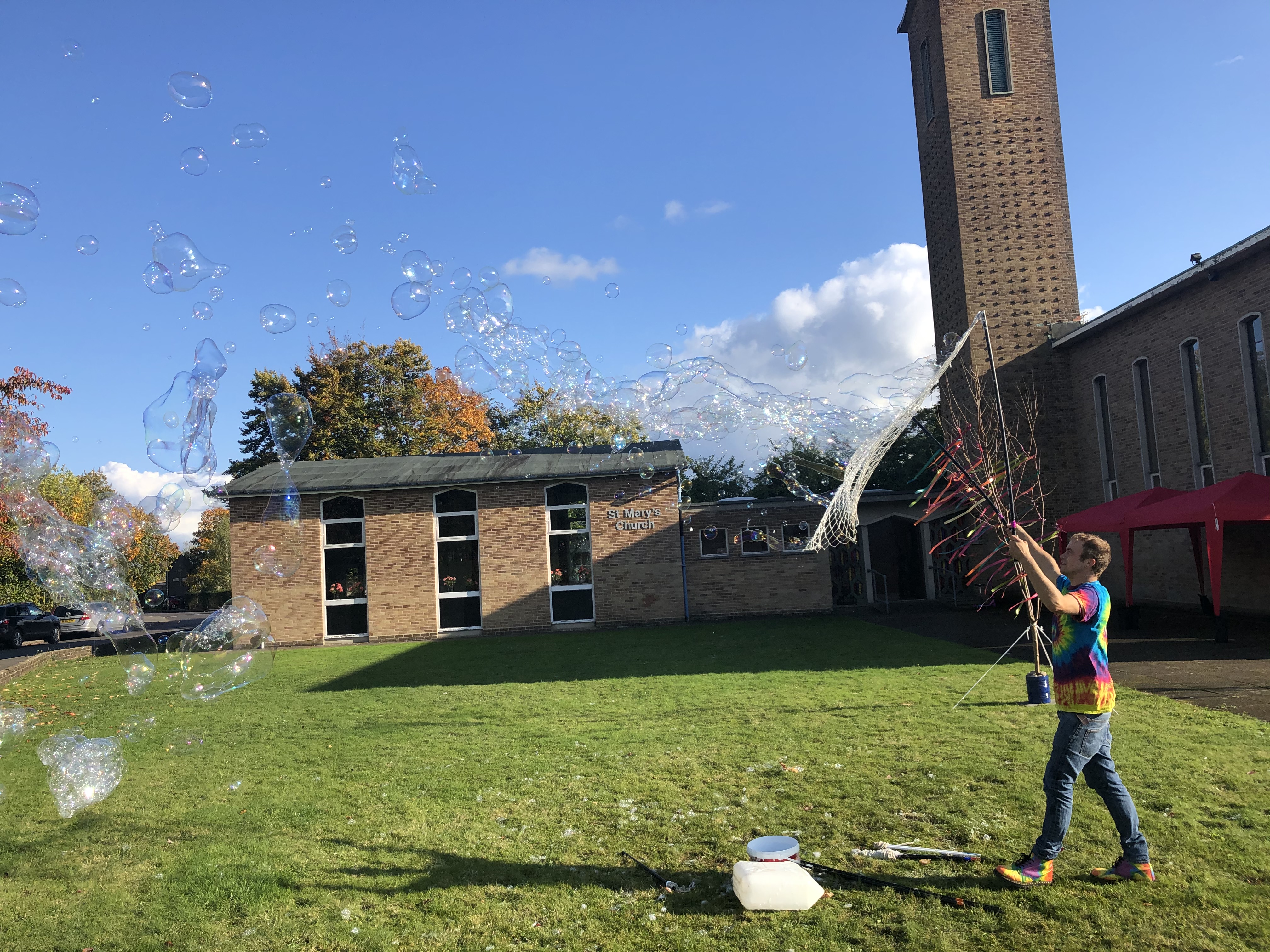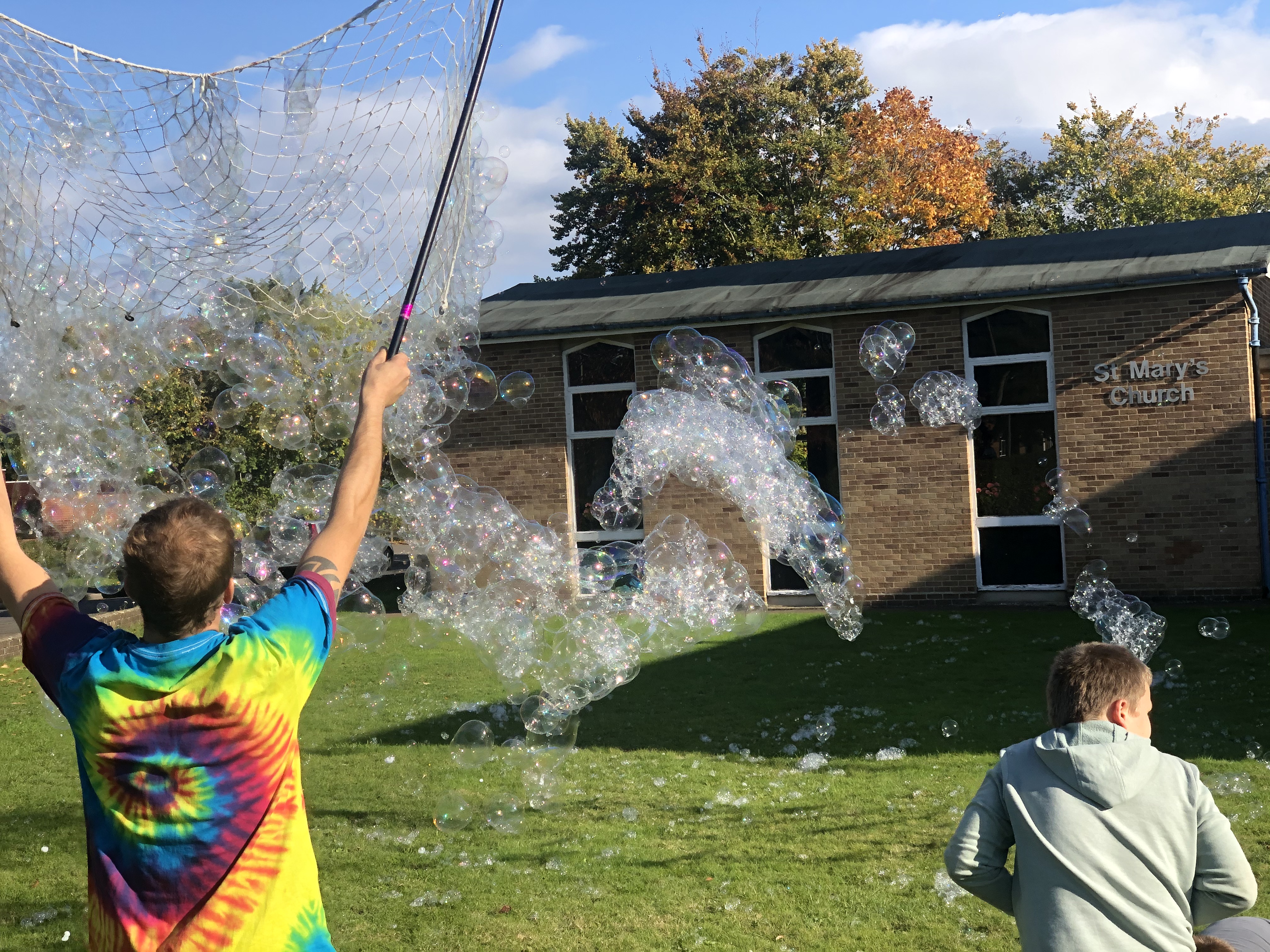 A local church reverend was mesmerized by me practicing one day when she was out walking her dog, asked for more information and if I could help… I was more then happy to! the pictures don’t do it justice, there was some lovely music being played inside and filling the air around too. You can also see it turned into a master class. this boy was so excited and egger to have a go, just a shame i only had my big nets but that didn’t stop him from having a good go.