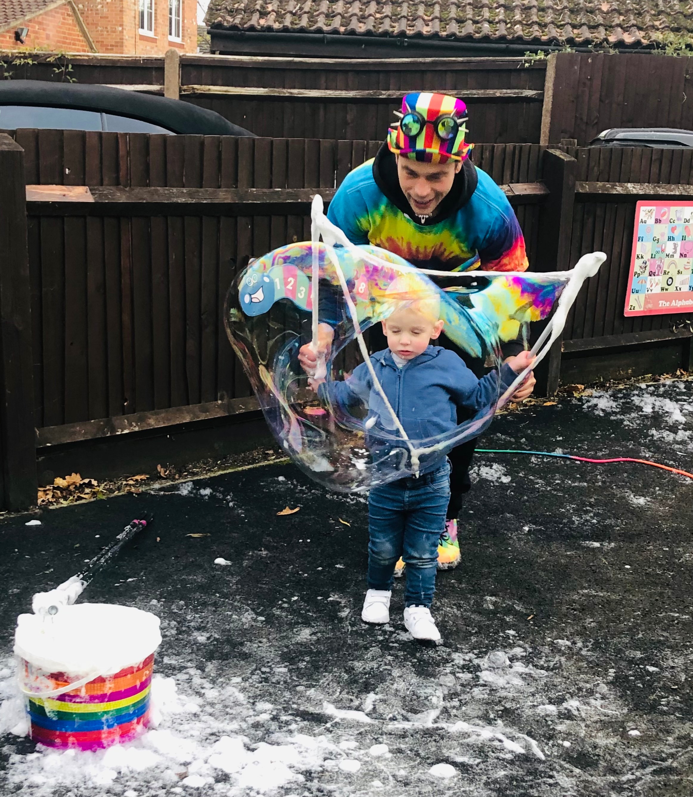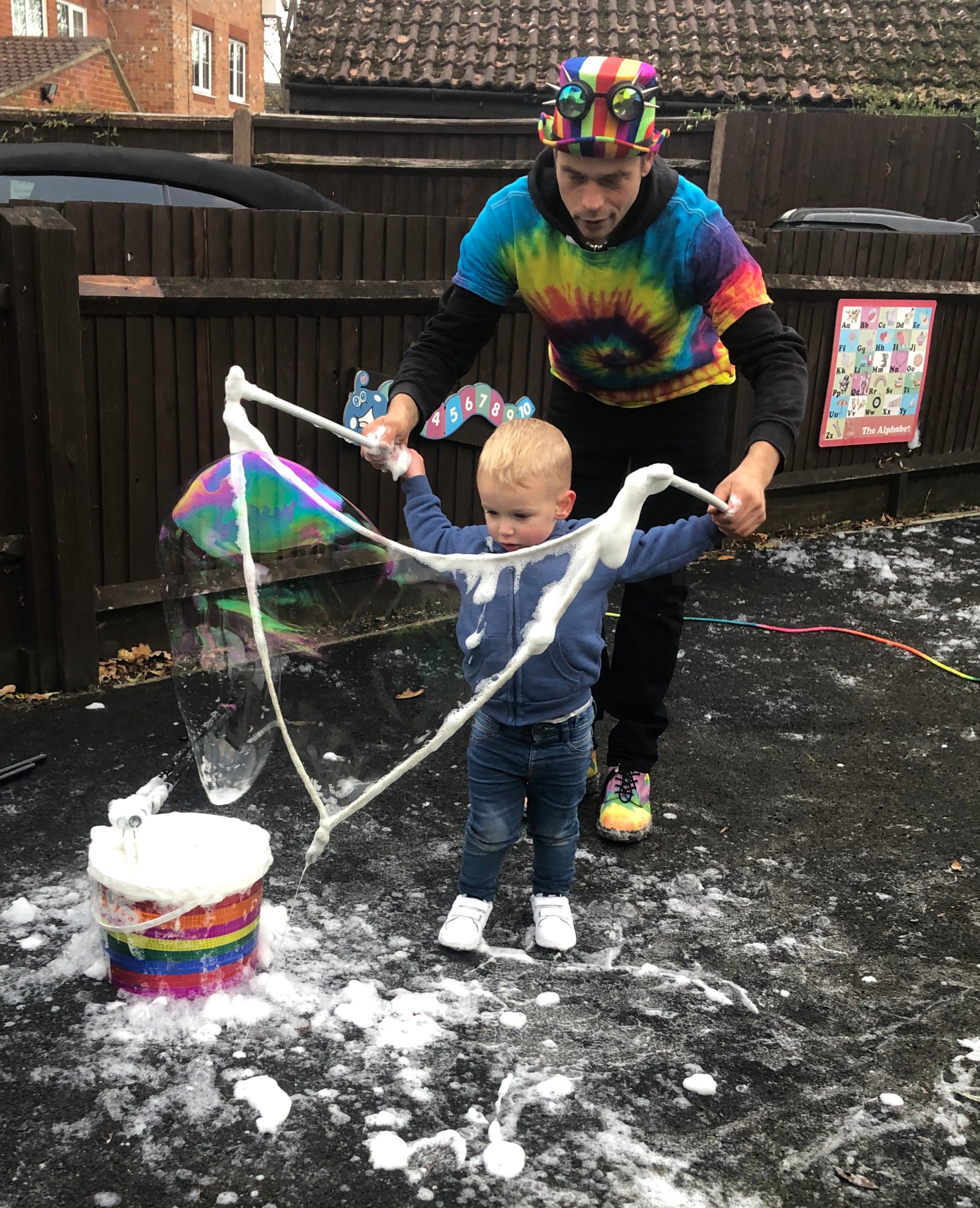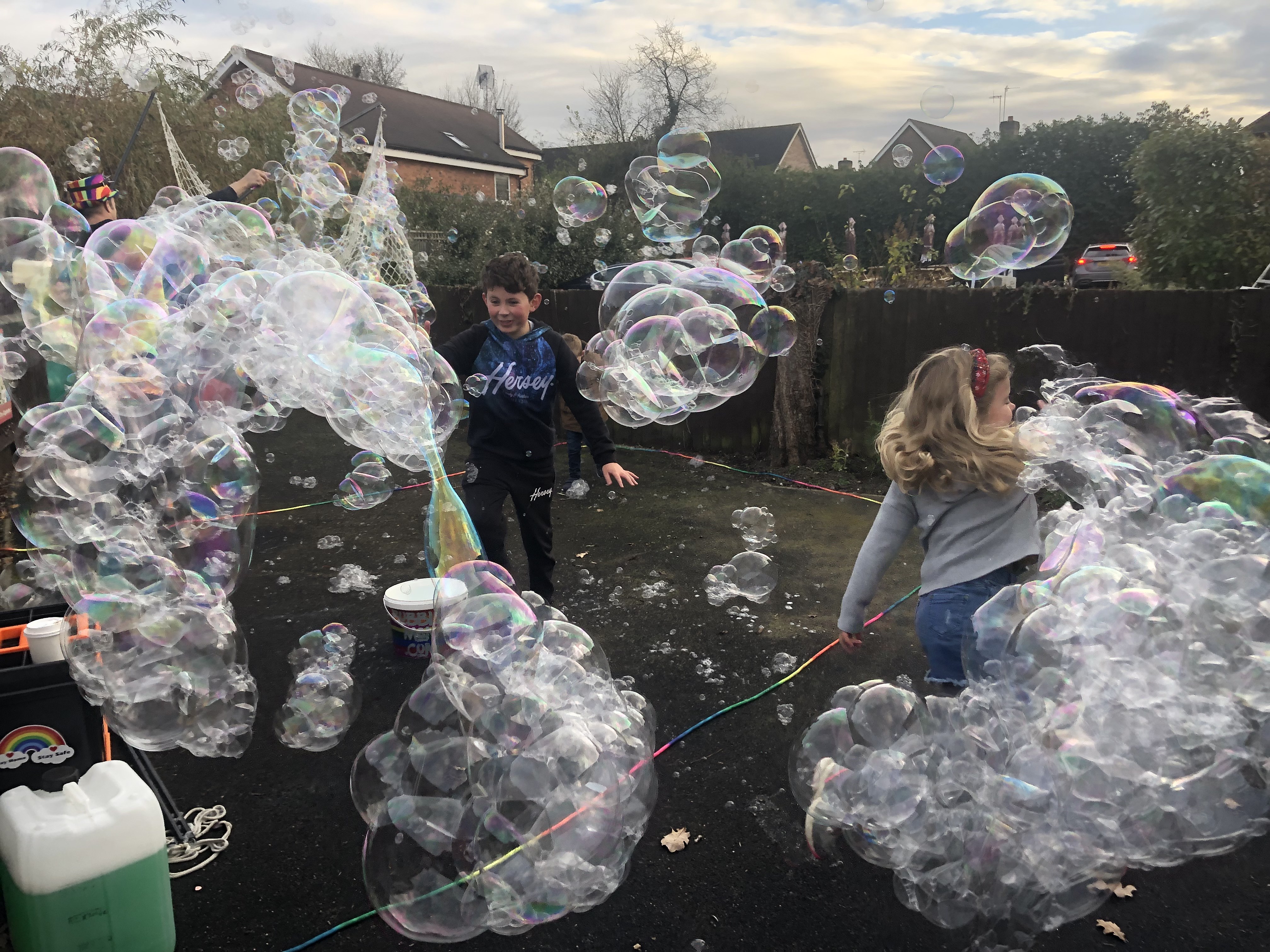 Iv never seen a child get so covered in bubbles and not get upset. I let him keep the wands at the end as I was so impressed.