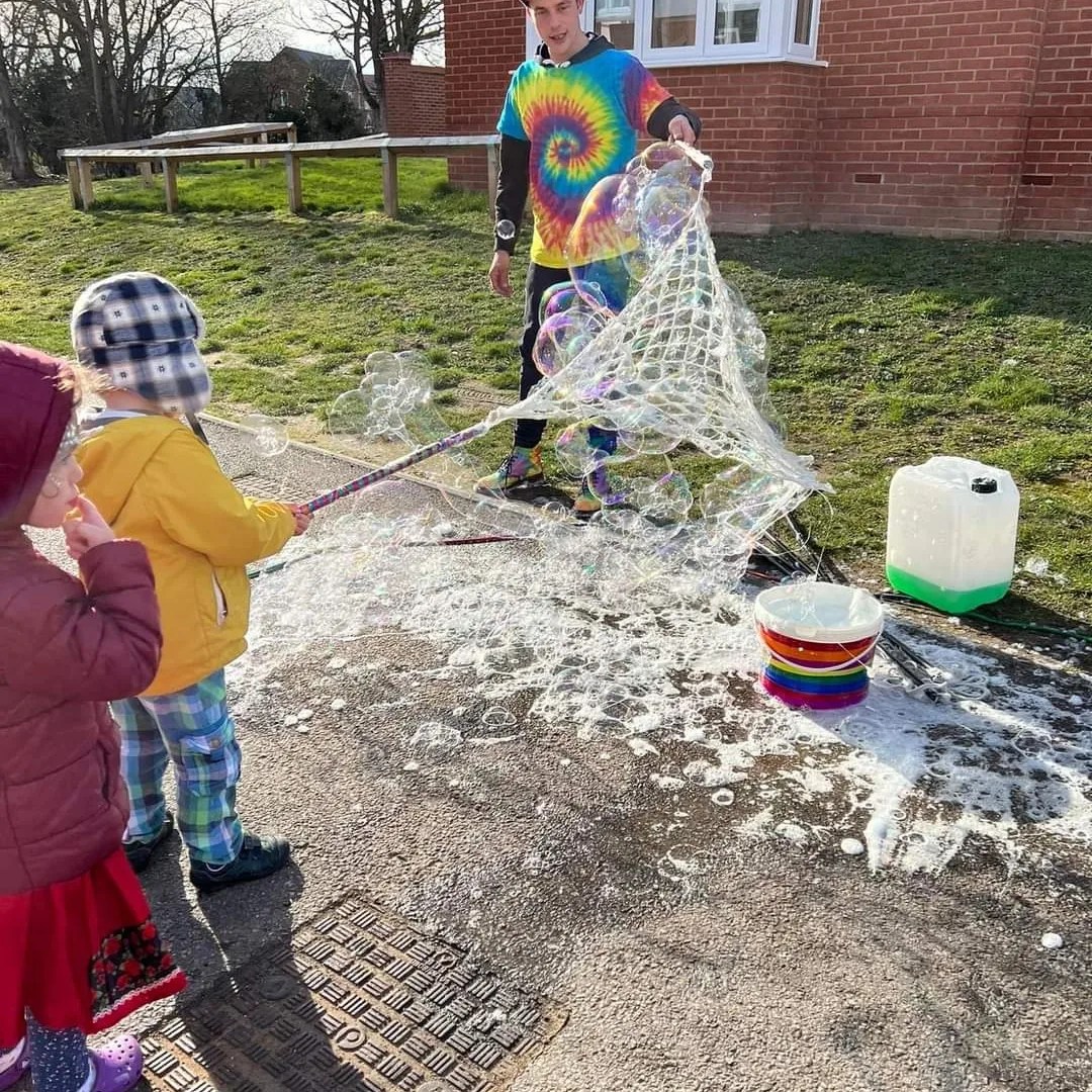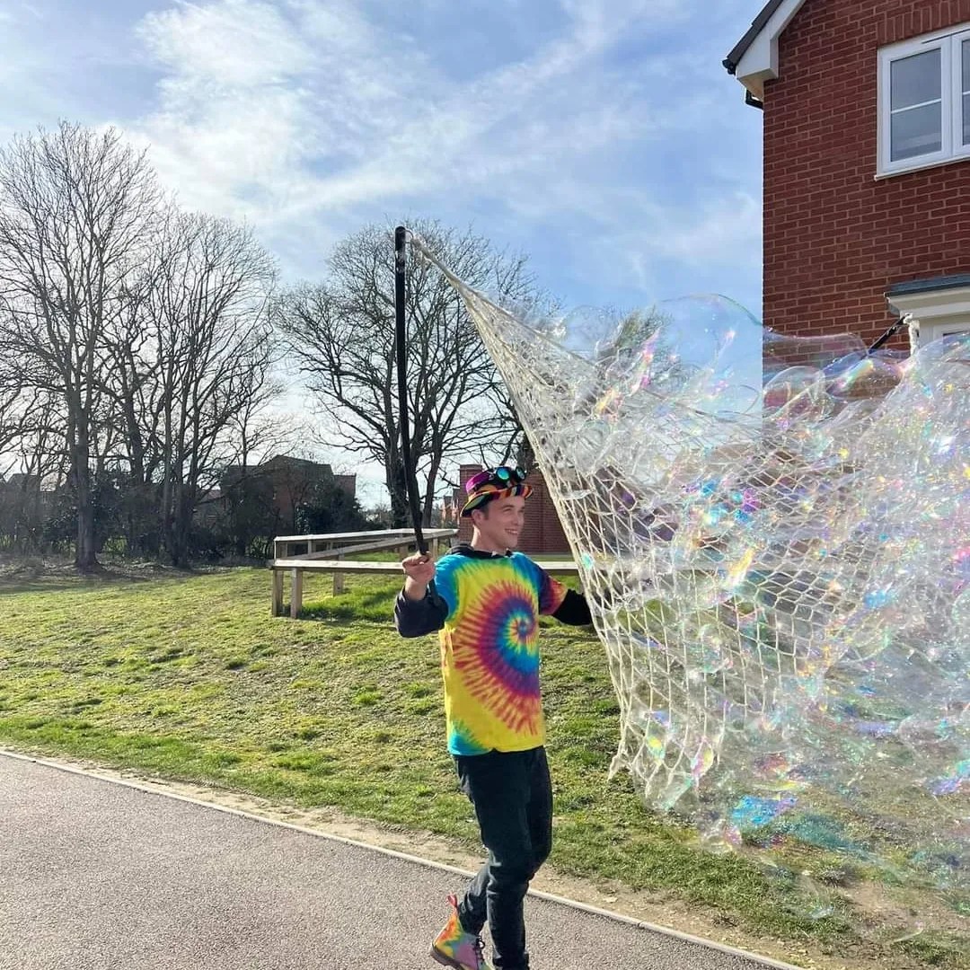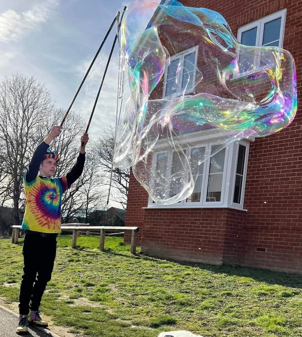 Kerry had asked if I could help at one of her events in Shinfield. I got there early to familiarize myself with the layout and check wind directions and get set up. It was great to see her team of people looking after every guest. The garden was filled with a gazebo for the bar and seating area. I didn’t want to squeeze in and take up the last spot of free space where the children were playing so we checked it was ok that I could perform just out the front of the house on a patch of grass. we had a good distance from any road but in future I will ask that an adult stand where the bubbles are blowing to prevent children going too far.