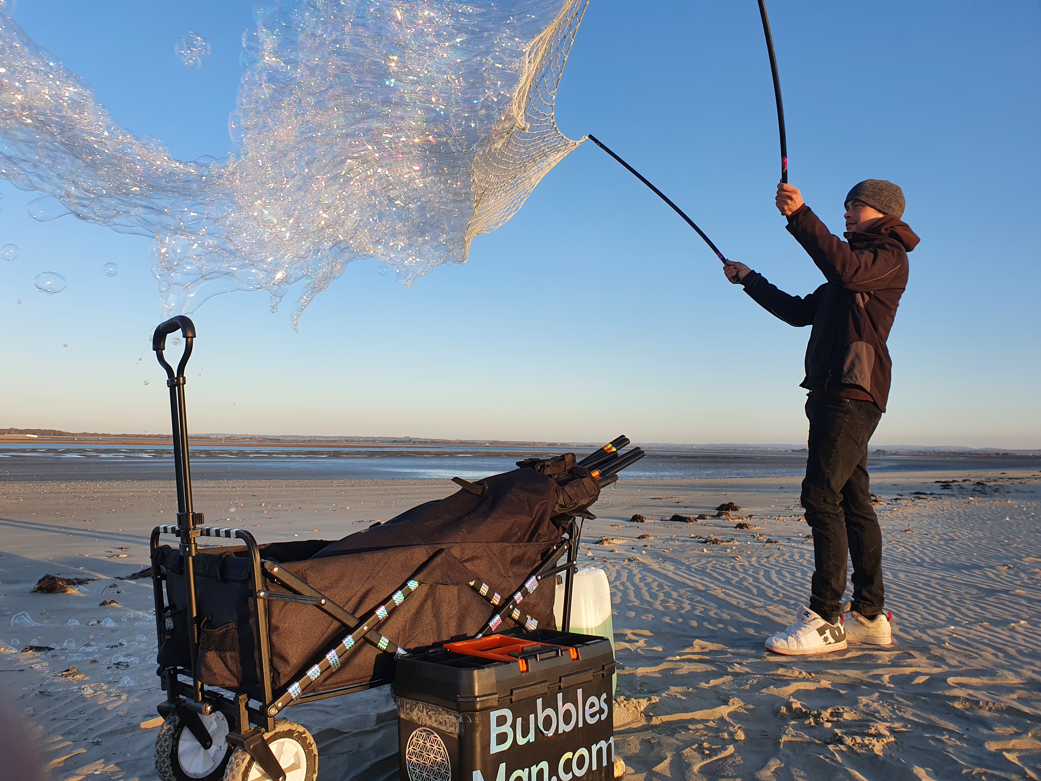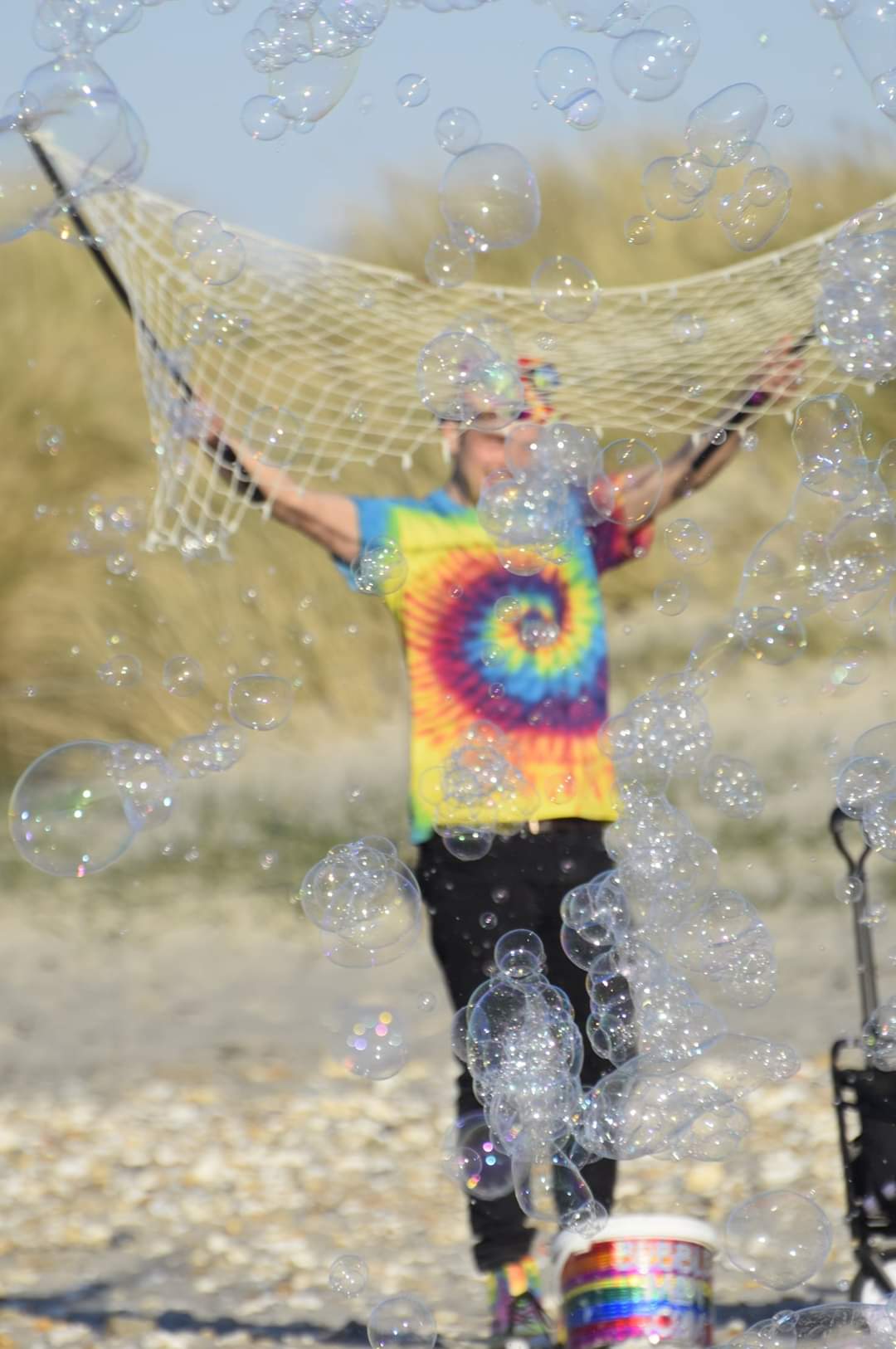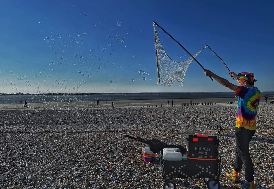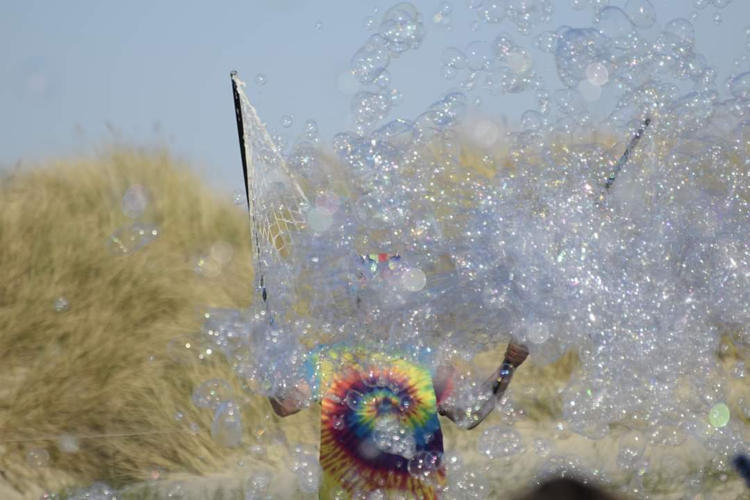 Bubble boy and I had an amazing time! We giggled hearing people being surprized and shocked by them. Seeing people slow walk towards us, walk throw a big bubble cloud and popping as many as they can. Letting there worries go,inner child’s out and chasing the magic.