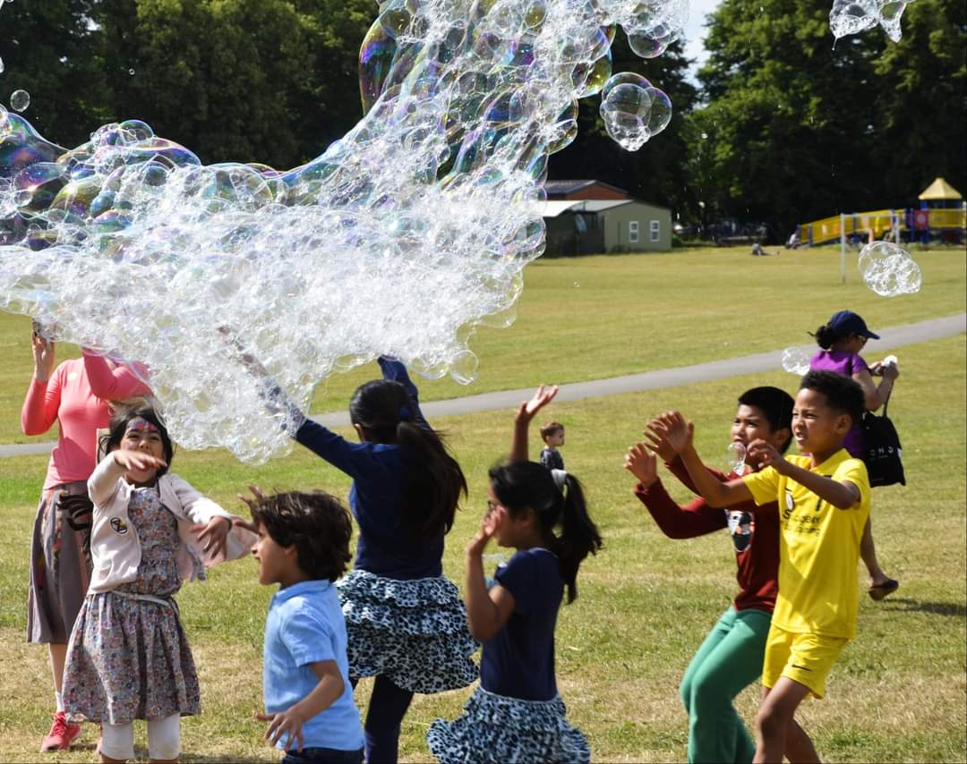 The crowd definitely went crazy for the bubbles! It was very challenging with the numbers and the personal space needed to perform in. The children did listen eventually, it’s just getting through the excitement of popping one first. It was a great experience and I’ve learnt some things to do to improve what I can offer and how I can adapt to suit situations like this.