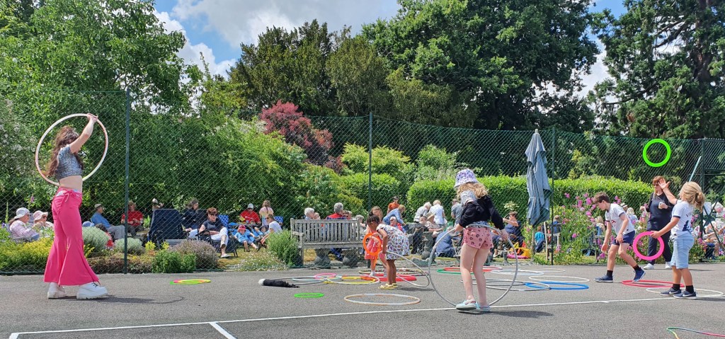 I was part of the entertainment and brought my Hoola-hooper friend Hayley along for the fun too! The tennis court was a perfect sized area to perform in. A few people came and asked for my advise on making their own. I really like it when this happens as there’s nothing to stop you having a go, finding your ingredients and trying yourself. It’s taken me many years to perfect the mix, use the right kit, cope with conditions and am still able to perform and make any event one to remember. Please do try to master the wibbles and wobbles yourselves!