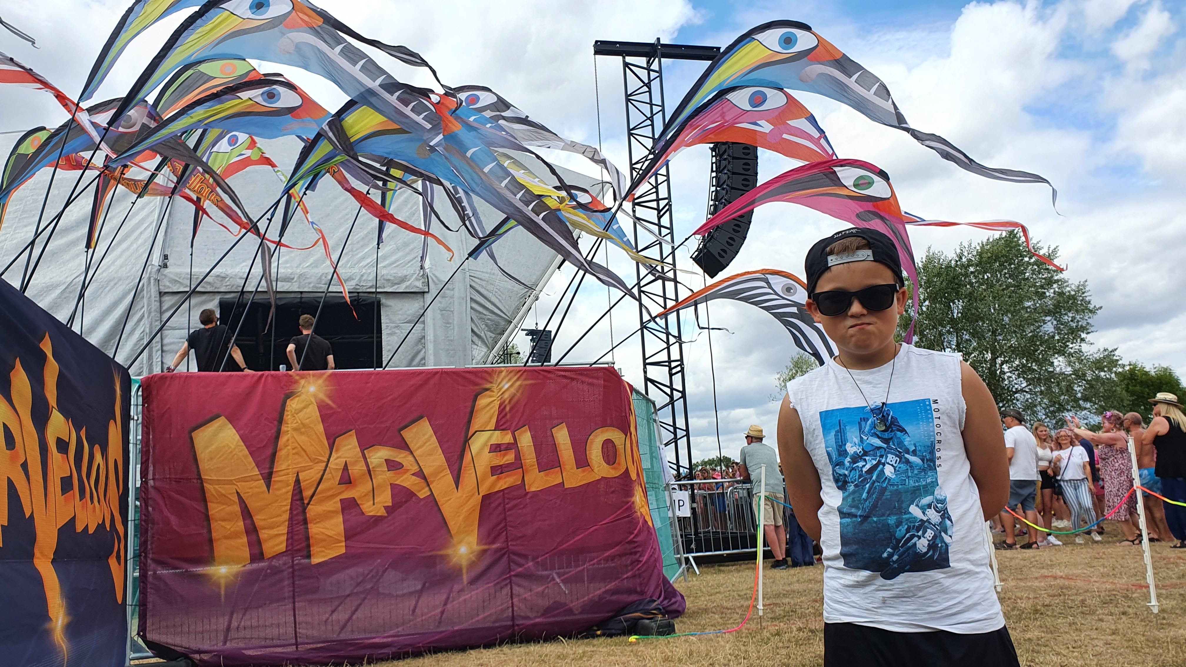 My good friend Kerry from Feeling Crafty asked me to join her and the team at Marvellous Festival which was held at Dinton Pastures near Reading. It was her first year at the event and they had placed her in a bad location. she spoke up and had a word with the organizers and was then moved to a much better spot ight next to the main stage! she definitely got noticed with her clever use of boats and yummy slushy’s and milkshakes. Here is her website if your interested in hiring https://www.areyoufeelingcrafty.co.uk/. The wind was perfect for bubbles, they flew into and over the crowd. l loved the fact I was right next to the flags and main stage. Seeing my bubbles travel so far and make such a sight was magic. Bubble Boy joined me as my bodyguard.