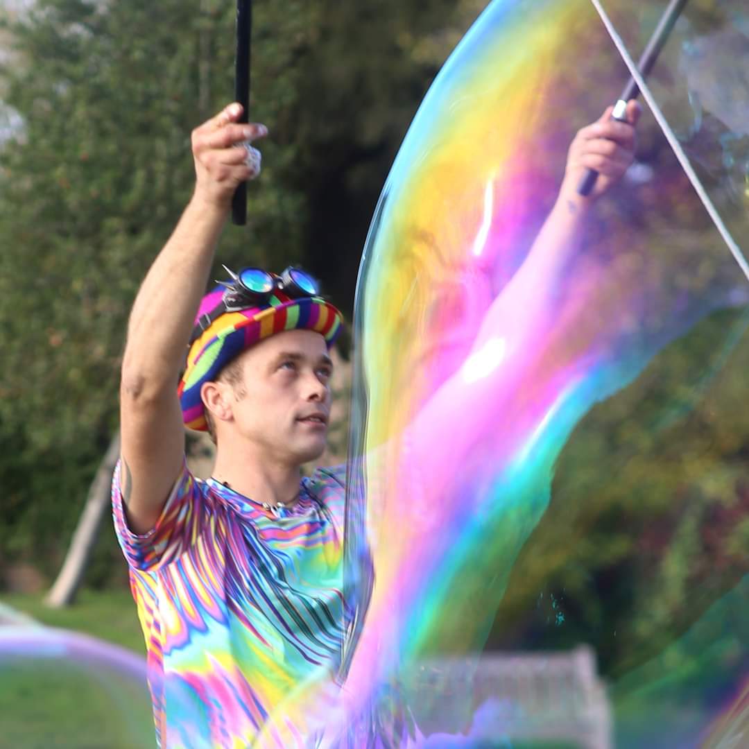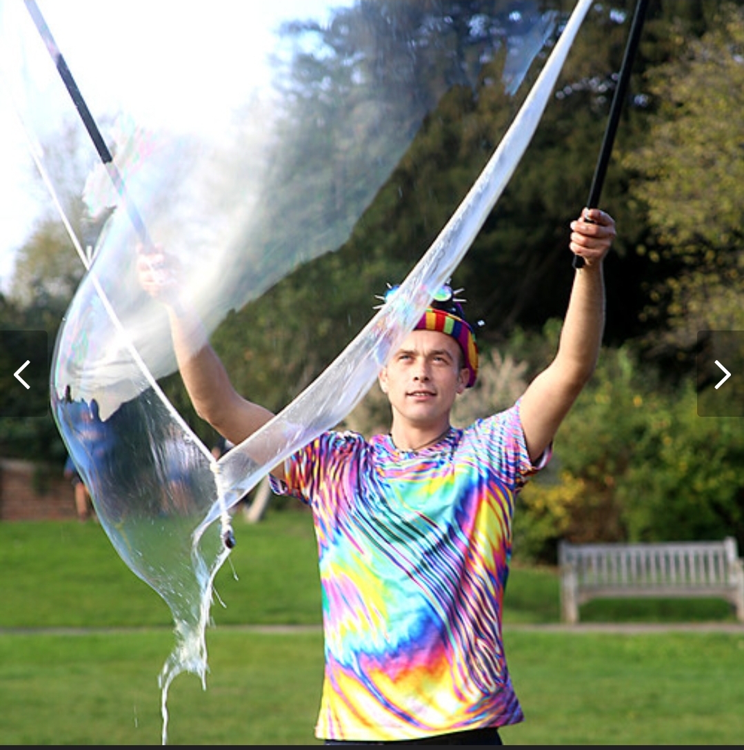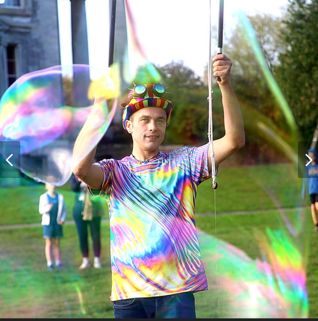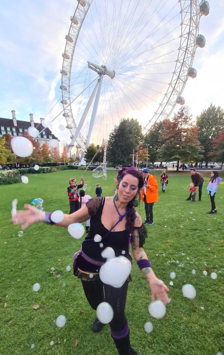 Being an apprentice for the Association Of International Bubble Artists I was invited to BubbleFest London 2022. we all met up at Beckenham Place park. It was so surreal to be pulling my cart up to another one, loaded with wands and kit, there were so many containers of juice! I was warmly welcomed in and took a seat. Once the majority had arrived we walked over to the large open space and got set up. Billions and billions were blown!
