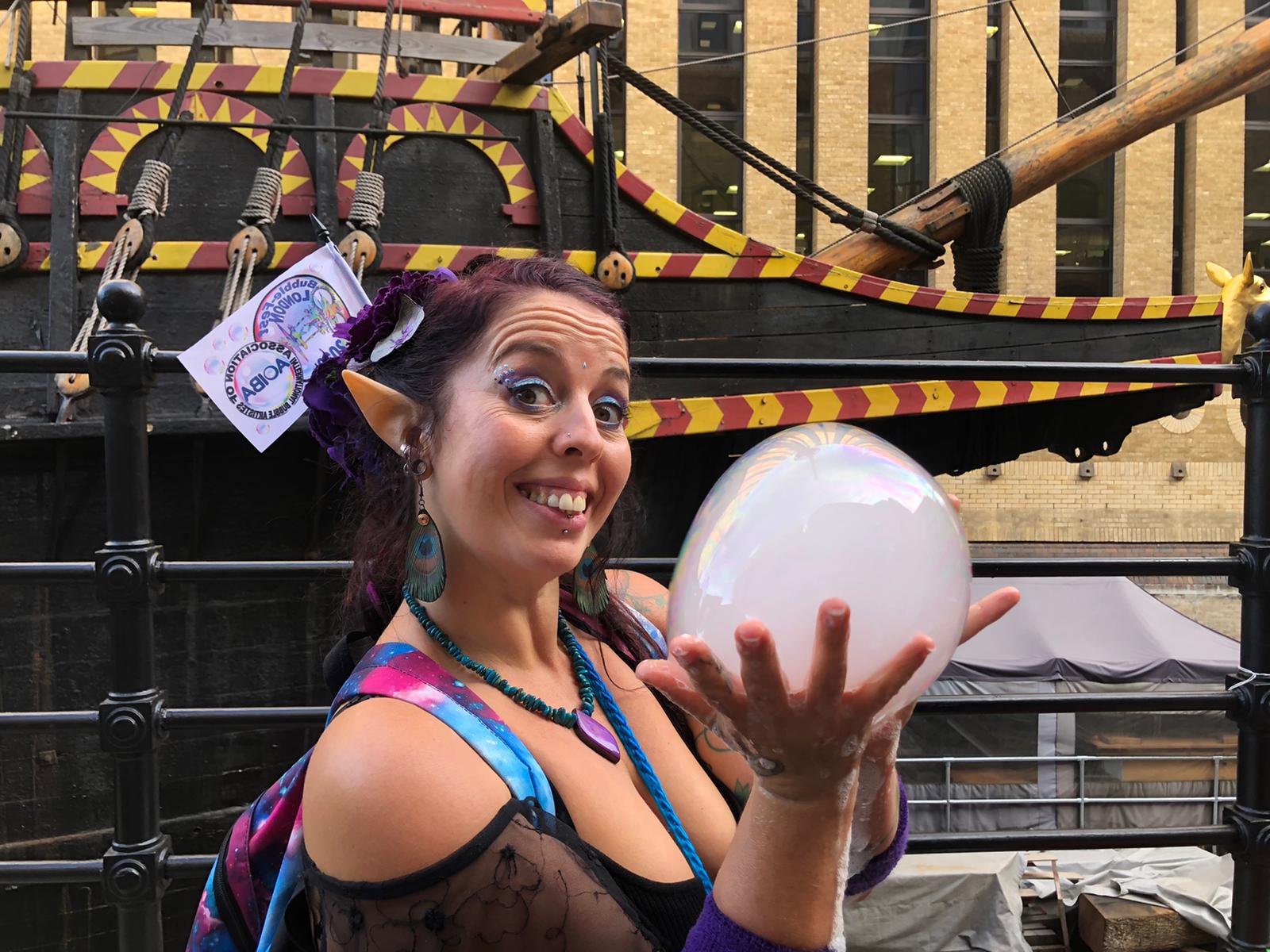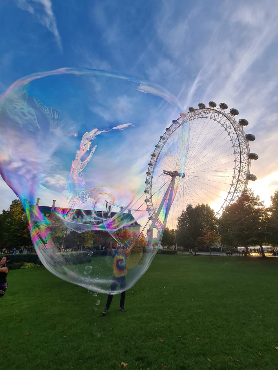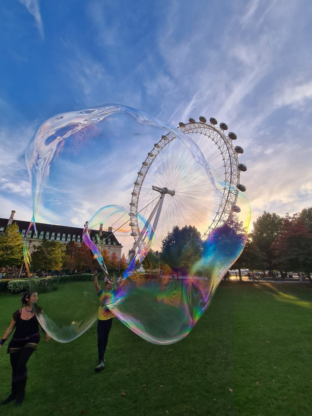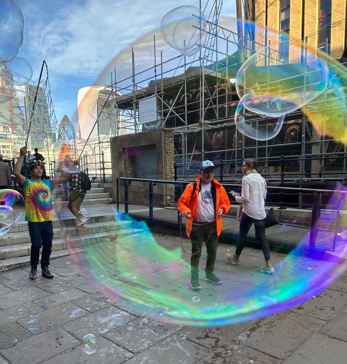 Being an apprentice for the Association Of International Bubble Artists I was invited to BubbleFest London 2022. we all met up at Beckenham Place park. It was so surreal to be pulling my cart up to another one, loaded with wands and kit, there were so many containers of juice! I was warmly welcomed in and took a seat. Once the majority had arrived we walked over to the large open space and got set up. Billions and billions were blown!