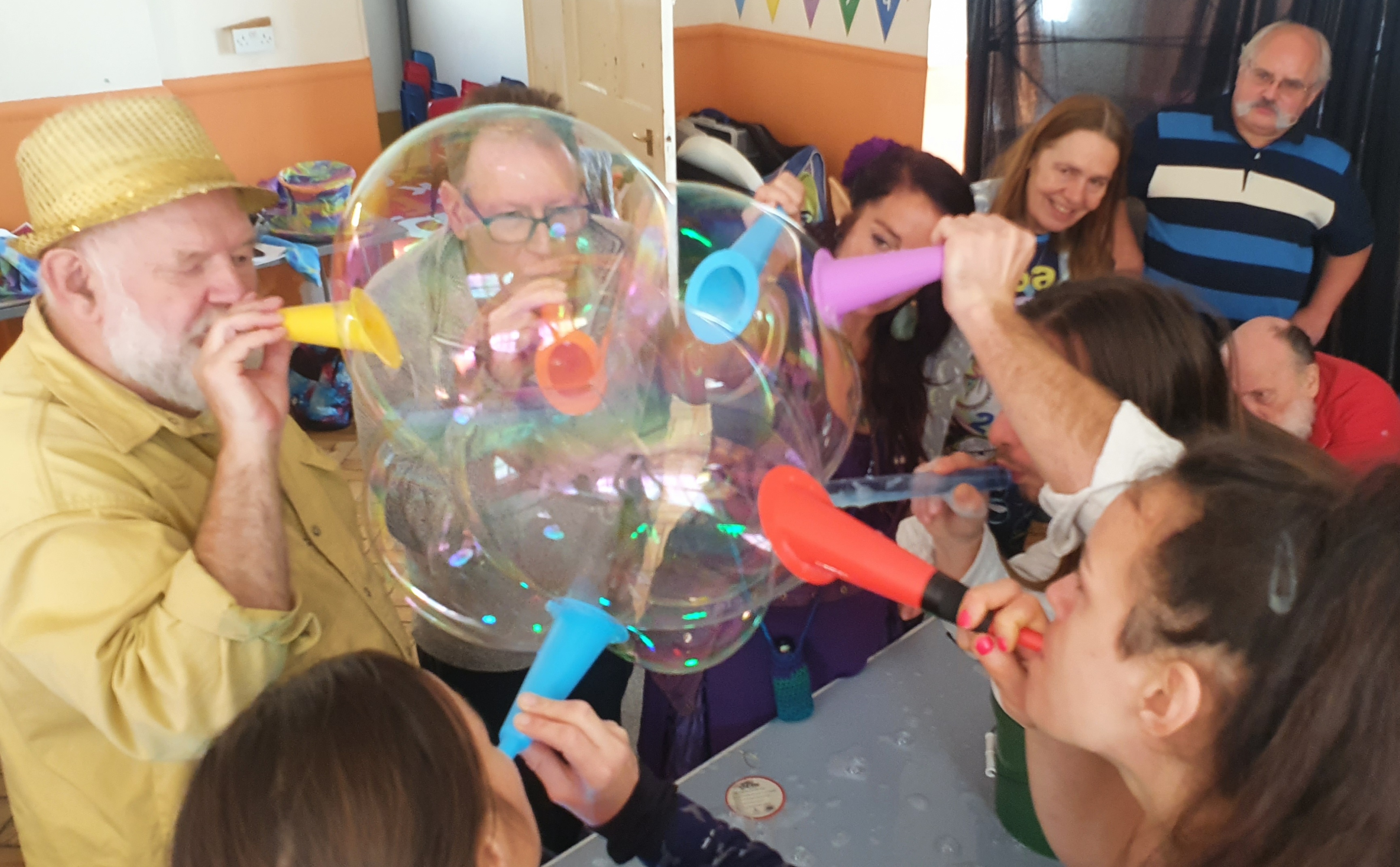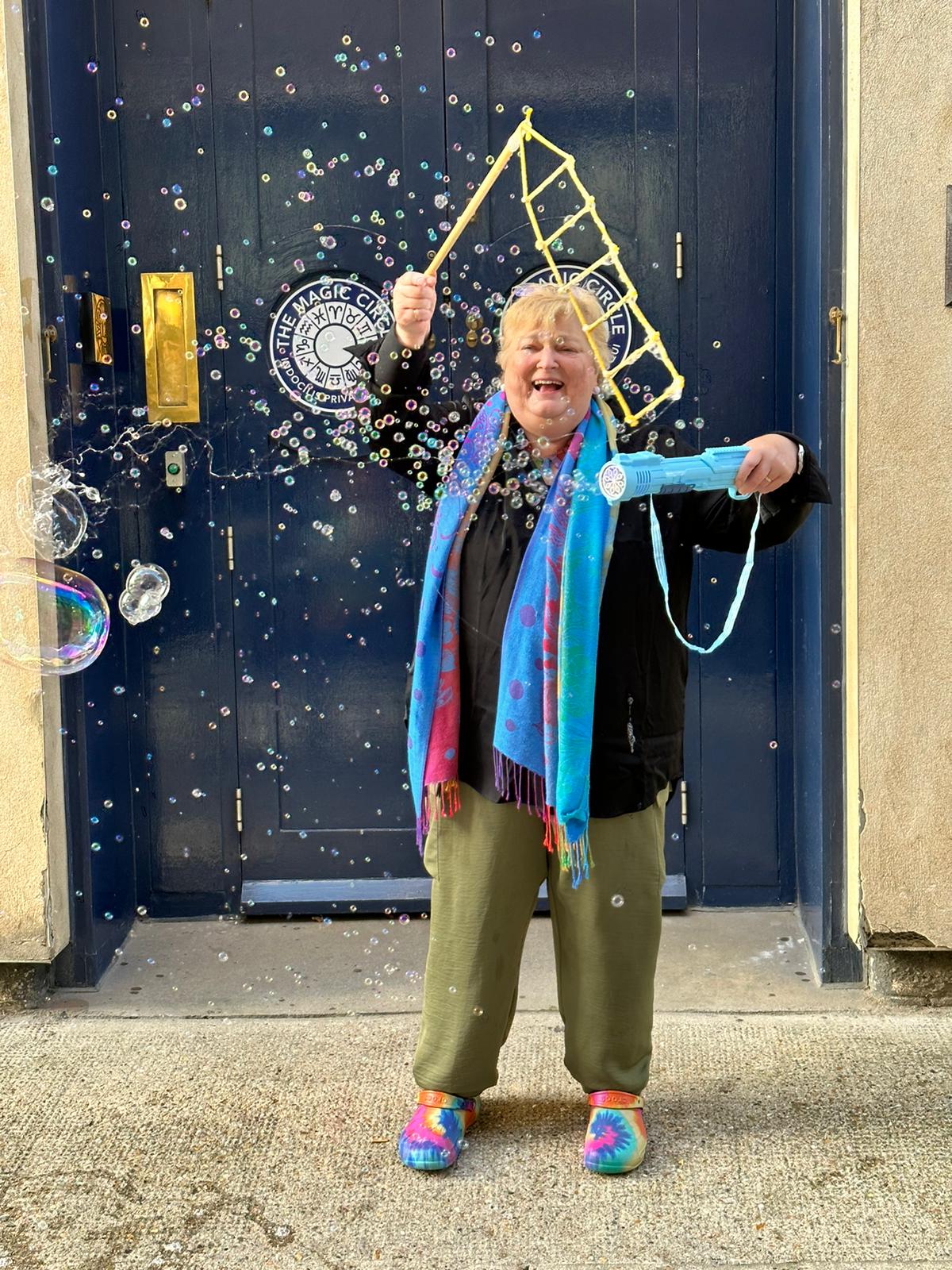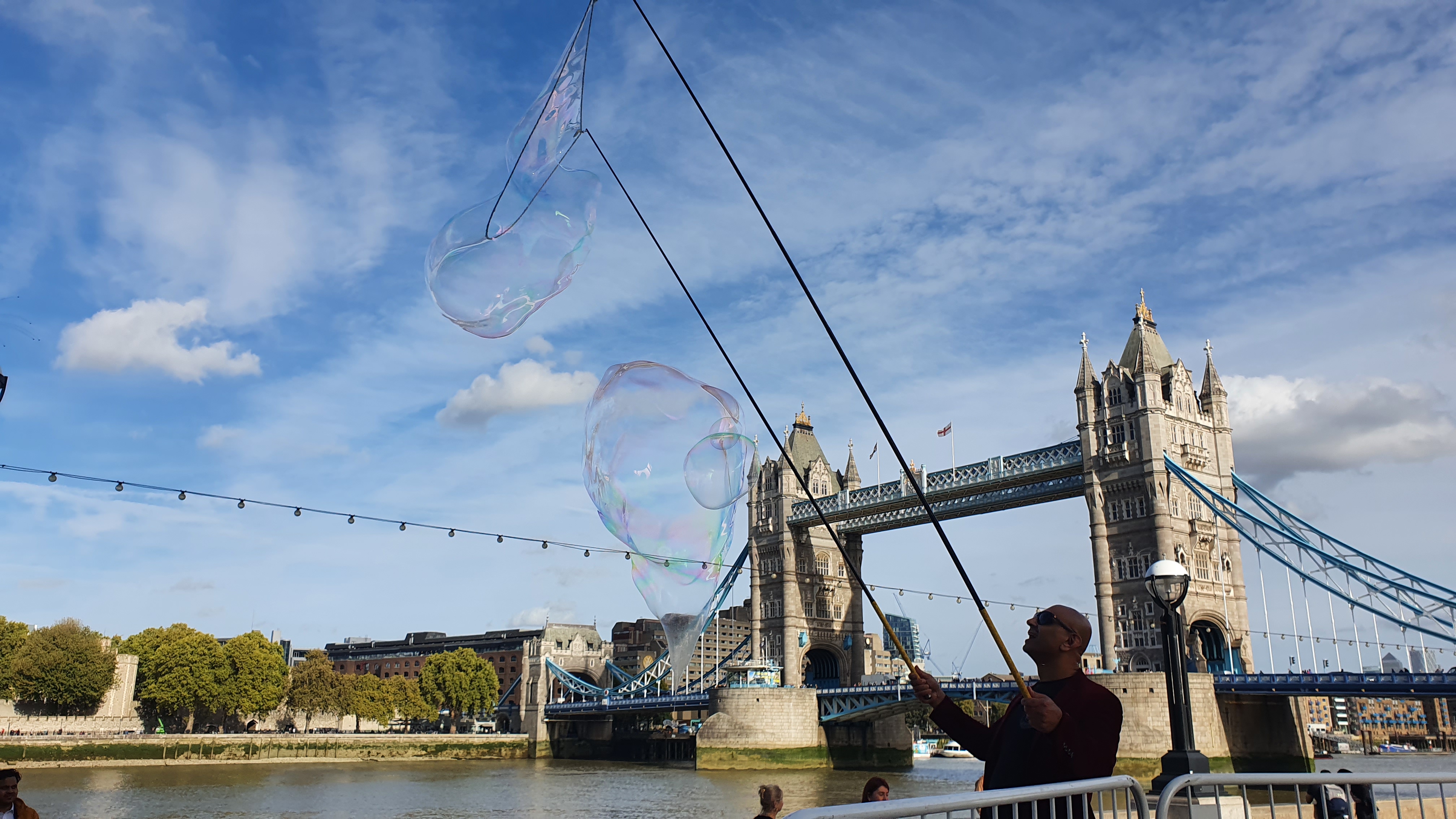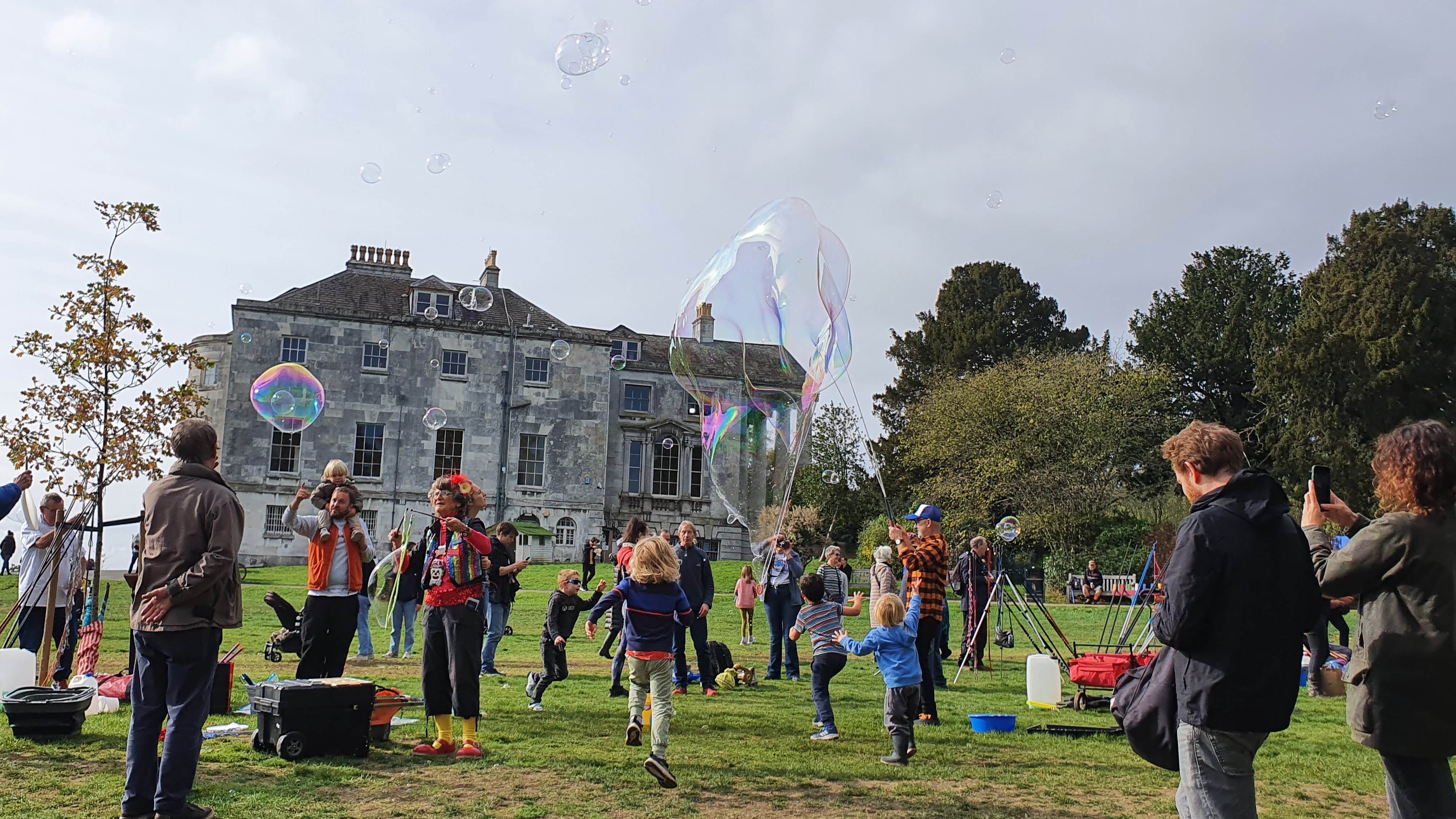 Being an apprentice for the Association Of International Bubble Artists I was invited to BubbleFest London 2022. we all met up at Beckenham Place park. It was so surreal to be pulling my cart up to another one, loaded with wands and kit, there were so many containers of juice! I was warmly welcomed in and took a seat. Once the majority had arrived we walked over to the large open space and got set up. Billions and billions were blown!