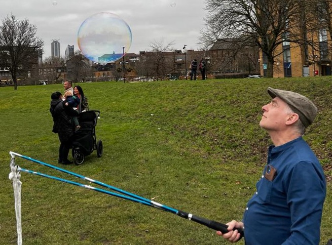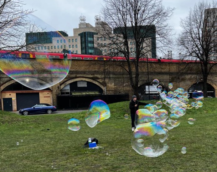 Feww! I made it on to the train just in time, My phone battery was low and I needed to scan my ticket. I met a family of four on the way home from shopping and a football match. The youngest boy was in a West Ham outfit and restless. I eventually caved and got my foamer out and stopped the tears instantly. no one sung I’m forever blowing bubbles though. 20 minutes go by and the middle aged boy is restless after 10 games of eye spy. So I pull off my kaleidoscope lens goggles from my hat stuffed in my bag. OoO0o’s and Woww’s from the children. The dad has a go and then couldn’t stand up properly. The couple opposite me were friendly and mention how they’re off to a drag night in Yateley. The lady took a business card and said she works with adults with severe or several learning difficulties. Who knows if that will lead anywhere but what a fun adventure!