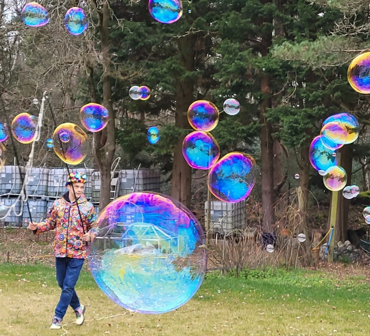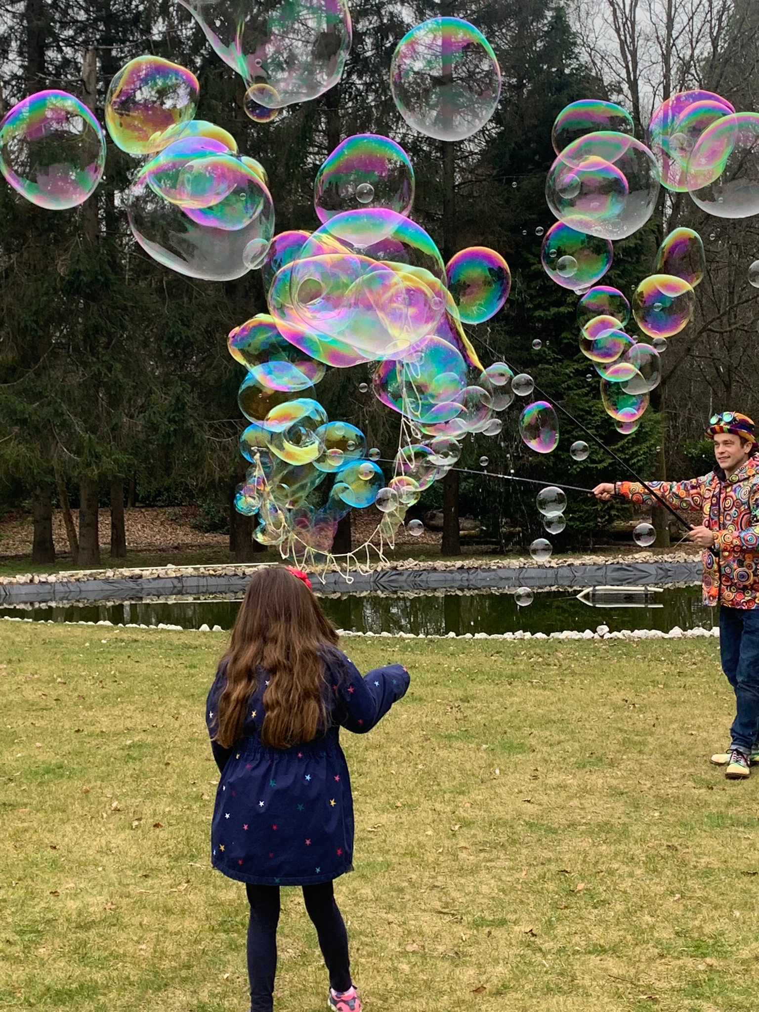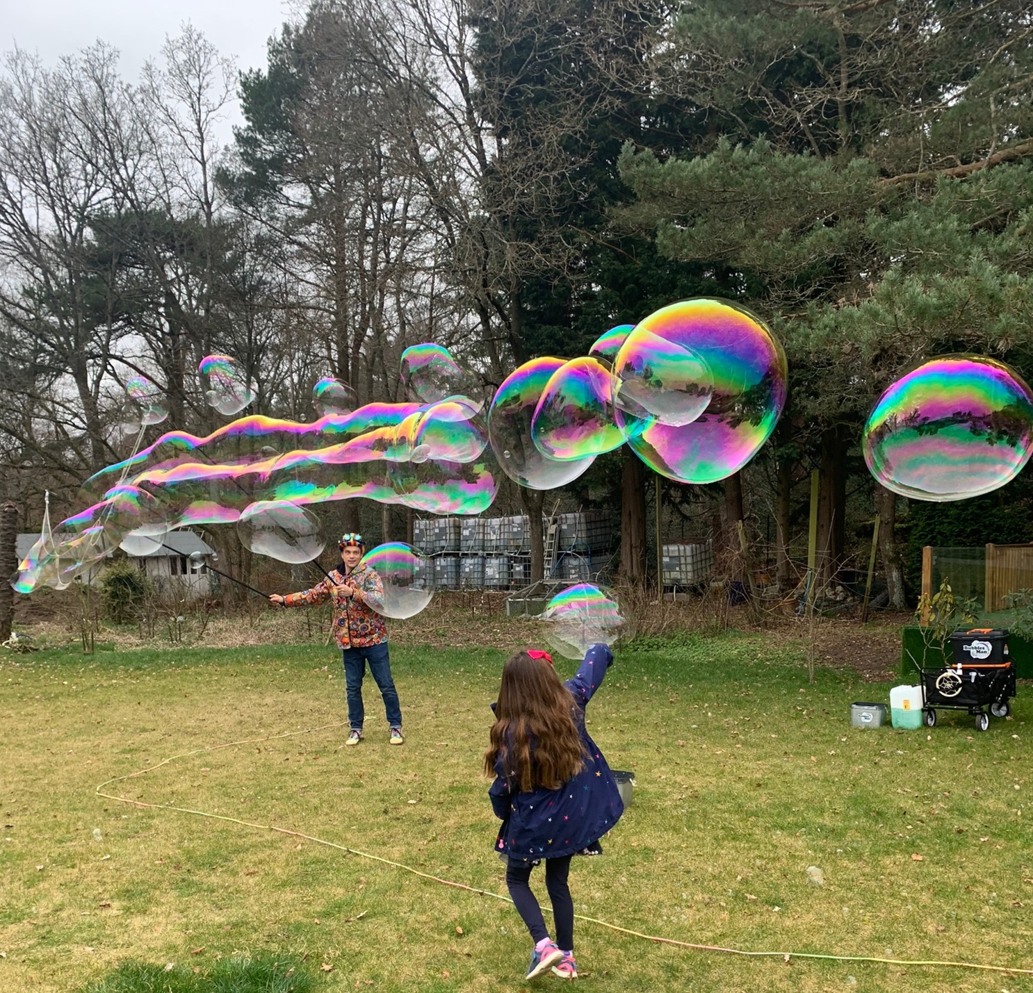 Michael came to my daughter’s birthday party this weekend. He performed for a group of children all of whom had special or additional needs. The bubbles were amazing both indoors and outdoors and the children were totally enthralled and entertained. Michael was really friendly, and great with the children and responded to their needs so well. Would definitely recommend. Thank you for the lovely time you gave everyone. – Karen M
